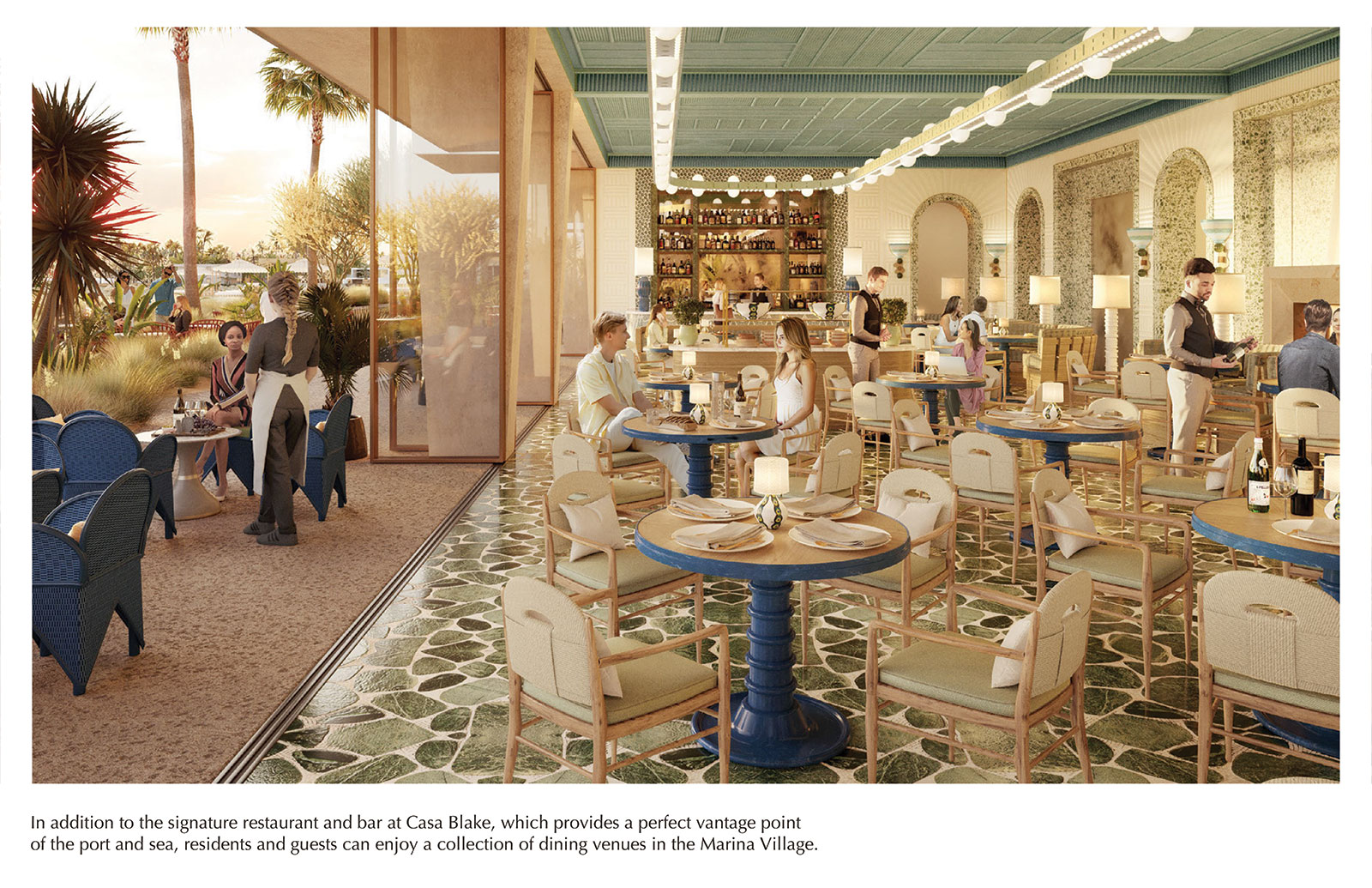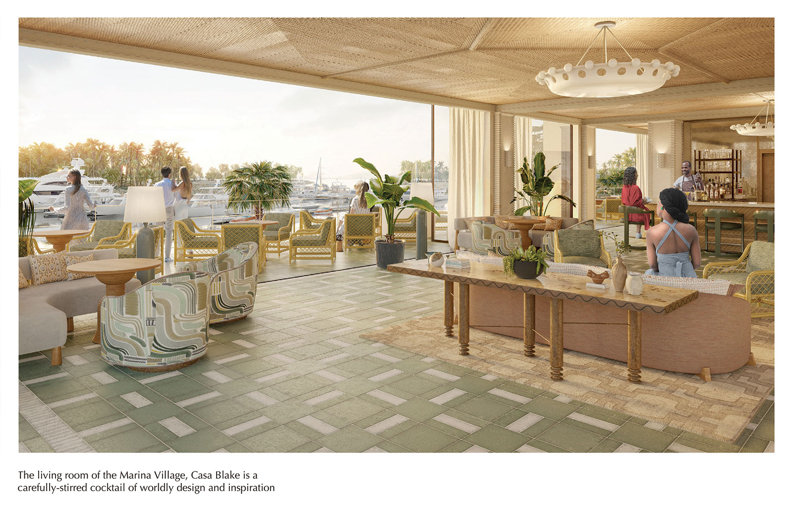 On the water’s edge in the Marina Village, Casa Blake Costa Palmas will be a home of inspired design, casual glamor and playful sophistication—the living room of the village and the soul of Costa Palmas, luxe and free-spirited.