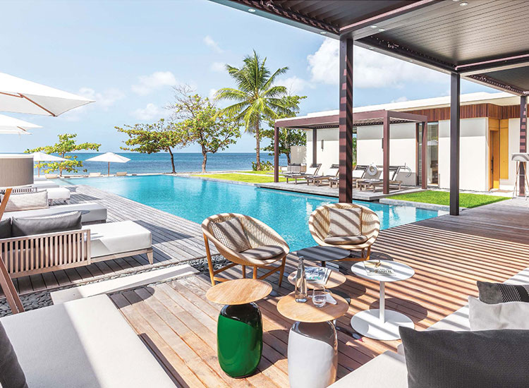 - Private pool deck with direct access to the beach